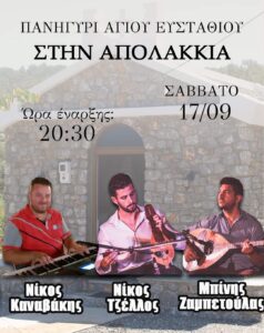 Home Γιορτή Σαρδέλας στο Άλσος Βεΐκου Αττικής Γιορτή Σαρδέλας στο Άλσος Βεΐκου Αττικής Γιορτή Σαρδέλας στο Άλσος Βεΐκου Αττικής το Σάββατο 17 Σεπτεμβρίου 2022 διοργανώνει η Ένωση Αγριτών Λέσβου Previous Post Πανηγύρι στην Σκουληκαριά Άρτας Next Post Πανηγύρι στην Απολακκιά Ρόδου