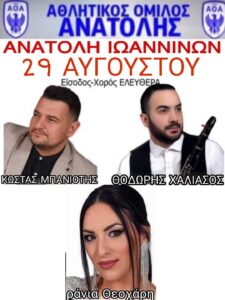 Home Πανηγύρι στην Ανατολή Ιωαννίνων Πανηγύρι στην Ανατολή Ιωαννίνων Πανηγύρι στην Ανατολή Ιωαννίνων την Κυριακή 28 Αυγούστου 2022 διοργανώνει ο ΑΟ Ανατολής με τους: Δημήτρη Τζίμα, Χρυσούλα Τζαμάλη και στο κλαρίνο ο Θοδωρής Χαλιασος. Ετικέτες # Τζαμάλη# Τζίμας# Χαλιάσος Previous Post Πανηγύρι στην Μεταμόρφωση Ιωαννίνων Next Post Πανηγύρι στην Ανατολή Ιωαννίνων
