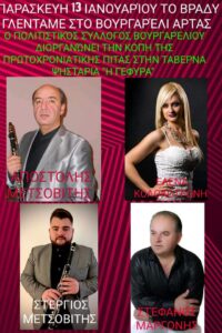 Home Γλέντι στην Βέροια Γλέντι στην Βέροια Γλέντι στην Βέροια το Σάββατο 14 Ιανουαρίου 2023 διοργανώνει ο Σύλλογος Δασκιωτων “Το Παλιόκαστρο” στο Κτήμα Γκαντιδη με τους: Κώστα Μήτση, Δημήτρη Τσιγκενόπουλο και στο κλαρίνο ο Βασίλης Μπακαγιάννης. Ετικέτες # Μήτσης# Μπακαγιάννης Previous Post Γλέντι στο Βουργαρέλι Άρτας Next Post Γλέντι στην Καλλιθέα Αττικής