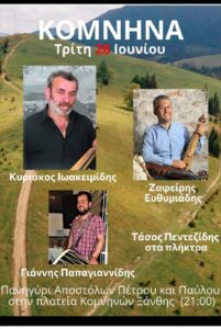 Home Κρητικό Γλέντι στις Μουρνιές Χανίων Κρητικό Γλέντι στις Μουρνιές Χανίων Κρητικό Γλέντι στις Μουρνιές Χανίων την Πέμπτη 30 Ιουνίου 2022 διοργανώνει ο Ήφαιστος Χανίων με τον Αντώνη Μαρτσάκη. Ετικέτες # Μαρτσάκης Previous Post Πανηγύρι στα Κομνηνά Ξάνθης Next Post Κρητικό Γλέντι στο Γαλάτσι Αττικής