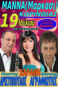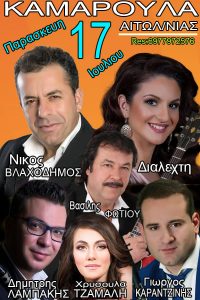 Πανηγύρι στα Βρουβιανά Αιτωλοακαρνανίας τη Παρασκευή 10 Ιουλίου 2020 με τους: Νίκο Βλαχοδήμο, Στέφανο Κόπανο, στη κιθάρα ο Βασίλης Φωτίου και στο κλαρίνο ο Νίκος ΤΖουκόπουλος.