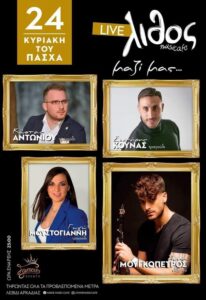 Πανηγύρι στα Πηγάδια (Τζάιλο) Αχαίας τη Παρασκευή 29 Απριλίου 2022 στο κέντρο “Γιδιάρης” με τους: Γιώργο Μπέκιο, Δήμητρα Μπέκιου, Έλενα Γεωργαντά, Τάκη Μπαλάση και στο κλαρίνο ο Νεκτάριος Κοκκώνης