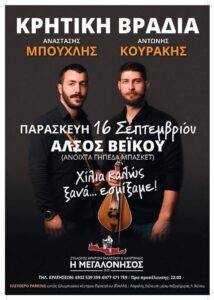 Πανηγύρι στην Αγία Παρασκευή Θεσσαλονίκης την Παρασκευή 9 Σεπτεμβρίου 2022 διοργανώνει ο Σύλλογος Σαρακατσαναίων Θεσσαλονίκης “Η Ένωση” στο 5ο Σαρακατσάνικο Αντάμωμα με τους: Νίκο Γιαννακό, Κώστα Γαρέφη, Κώστα Ζαραλη και Γιώργο Μαλιαχοβα.