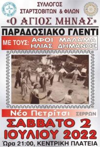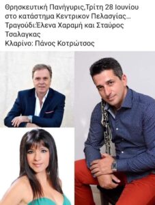 Πανηγύρι στην Ανάληψη Θέρμου Αιτωλοακαρνανίας την Πέμπτη 28 Ιουλίου 2022 με τους: Βασίλη Κωστούλα, Κωνσταντίνο Τσαμαδό και στο κλαρίνο ο Άρης Μουγκοπέτρος.