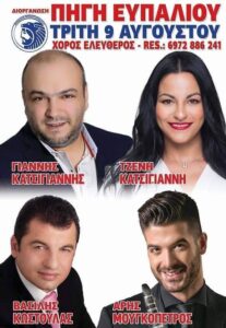 Πανηγύρι στην Πλατανόβρυση Αχαΐας την Τρίτη 26 Ιουλίου 2022 στην ταβέρνα – ψησταριά ” Η Μετζενα” με τους: Γιώργο Μπέκιο, Δήμητρα Μπέκιου, Τάκη Μπαλάση και στο κλαρίνο ο Βασίλης Σαλέας.
