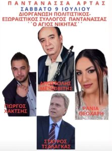 Home Πανηγύρι στις Λιβανάτες Φθιώτιδας Πανηγύρι στις Λιβανάτες Φθιώτιδας Πανηγύρι στις Λιβανάτες Φθιώτιδας την Τετάρτη 6 Ιουλίου 2022 διοργανώνει ο Α.Σ. Δάφνη Λιβανατων με τους : Γιάννη Καψάλη, Χαρά Βέρρα, Κώστα Αντωνίου και στο κλαρίνο ο Μάκης Τσίκος. Ετικέτες # Αντωνίου# Βέρρα# Καψάλης# Τσίκος Previous Post Πανηγύρι στα Χάνια Γαβρολίμνης Next Post Πανηγύρι στην Παντάνασσα Άρτας