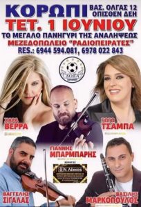Πανηγύρι στους Κωστακιούς Άρτας τη Παρασκευή 3 Ιουνίου 2022 με τους: Γιάννη Καψάλη, Διαλεχτή και στο κλαρίνο ο Μάκης Τσίκος