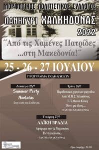 Πανηγύρι στο Γομοστό Αχαΐας το Σάββατο 30 Ιουλίου 2022 στο κέντρο “Νιφορας” με τους: Πίτσα Παπαδοπούλου και Γιάννη Τάσσιο .