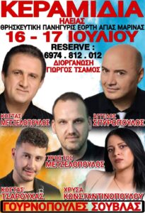 Πανηγύρι στο Δίον Πιερίας την Παρασκευή 14 Ιουλίου 2023 διοργανώνει ο Π.Ο Διας Διου με τους: Γιώτα Γρίβα, Φαίη Ρουμπίνη, Βασίλη Ζαβαντία, Δημήτρη Μαρογιάννη, Σταυρενια Ζειμπεκη και στα κλαρίνα οι Ζήσης Τσολακίδης και Δημήτρης Χρυσόπουλος
