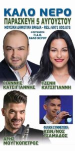 Πανηγύρι στο Δερβένι Κορινθίας την Πέμπτη 4 Αυγούστου 2022 διοργανώνει ο Αστέρας Δερβενίου με τους: Γιάννη Καψάλη, Τζένη Κατσίγιαννη, Αλέξανδρο Σιγάλα, Βαρβάρα Βαλη, Γιάννη Τσιλη και στα κλαρίνα οι Μάκης Τσίκος και Παναγιώτης Τολιας.