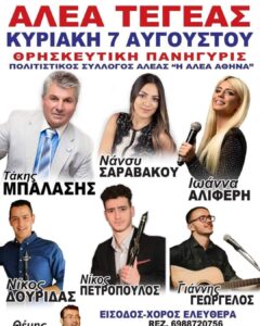Home Πανηγύρι στο Λουτρό Αιτωλοακαρνανίας Πανηγύρι στο Λουτρό Αιτωλοακαρνανίας Πανηγύρι στο Λουτρό Αιτωλοακαρνανίας τη Δευτέρα 8 Αυγούστου 2022 διοργανώνει ο Γ Φ Σ Αμβρακικός Λουτρού με τους: Γιάννη Καψάλη, Χαρά Βέρρα, Ρία Ελληνίδου, Μαρίνα Λαζαράκη και στο κλαρίνο ο Μάκης Τσίκος. Ετικέτες # Βέρρα# Ελληνίδου# Καψάλης# Λαζαράκη# Τσίκος Previous Post Πανηγύρι στην Αλέα Αρκαδίας Next Post Πανηγύρι στο Σιάμο Μεσσηνίας