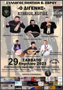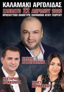 Πανηγύρι στο Τζάϊλο Αχαΐας το Σάββατο 22 Απριλίου 2023 στο κέντρο “Γιδιαρης” με τους: Γιώργο Μπέκιο, Κώστα Μετζελοπουλο, Δήμητρα Μπέκιου, Έλενα Γεωργαντά, Μαρίνα Λαζαράκη και στο κλαρίνο ο Άρης Μουγκοπετρος.